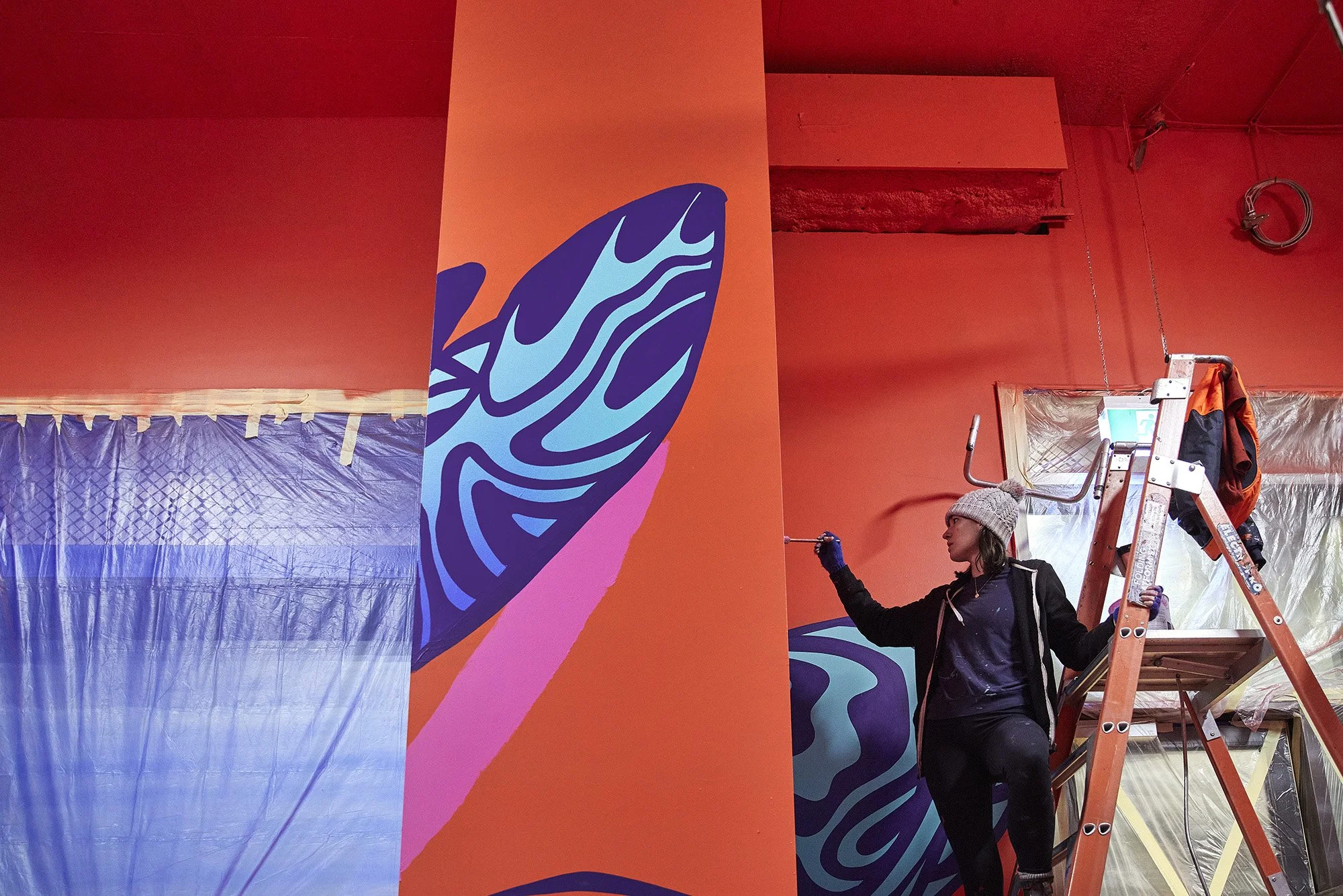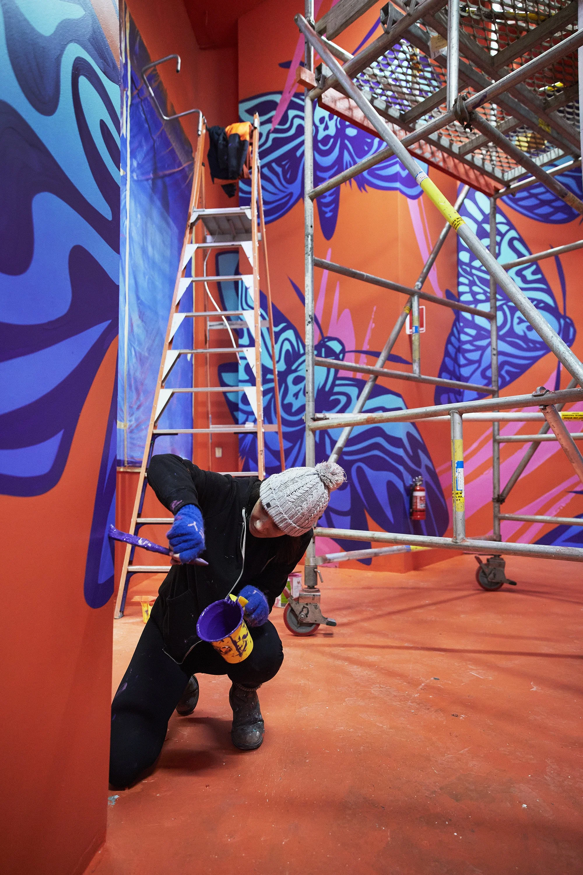 Making the most of the confined space, the artwork showcases custom neon text that requires mirrors on the floor for legibility. Titled 'Perspective is Everything,' this installation serves as a contemplation of the pandemic and lockdowns, showcasing the Skull Cap Moth which boasts patterns resembling skulls. The work encourages viewers to shift their viewpoint, and invites them to examine their present circumstances from a novel angle.